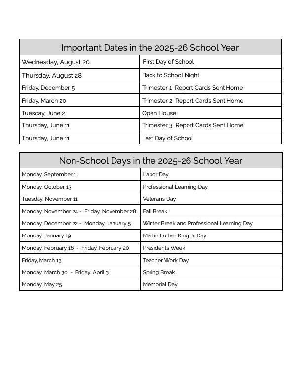 Early Day Schedule is 8:30am to 1:30pm for TK through fifth grade.